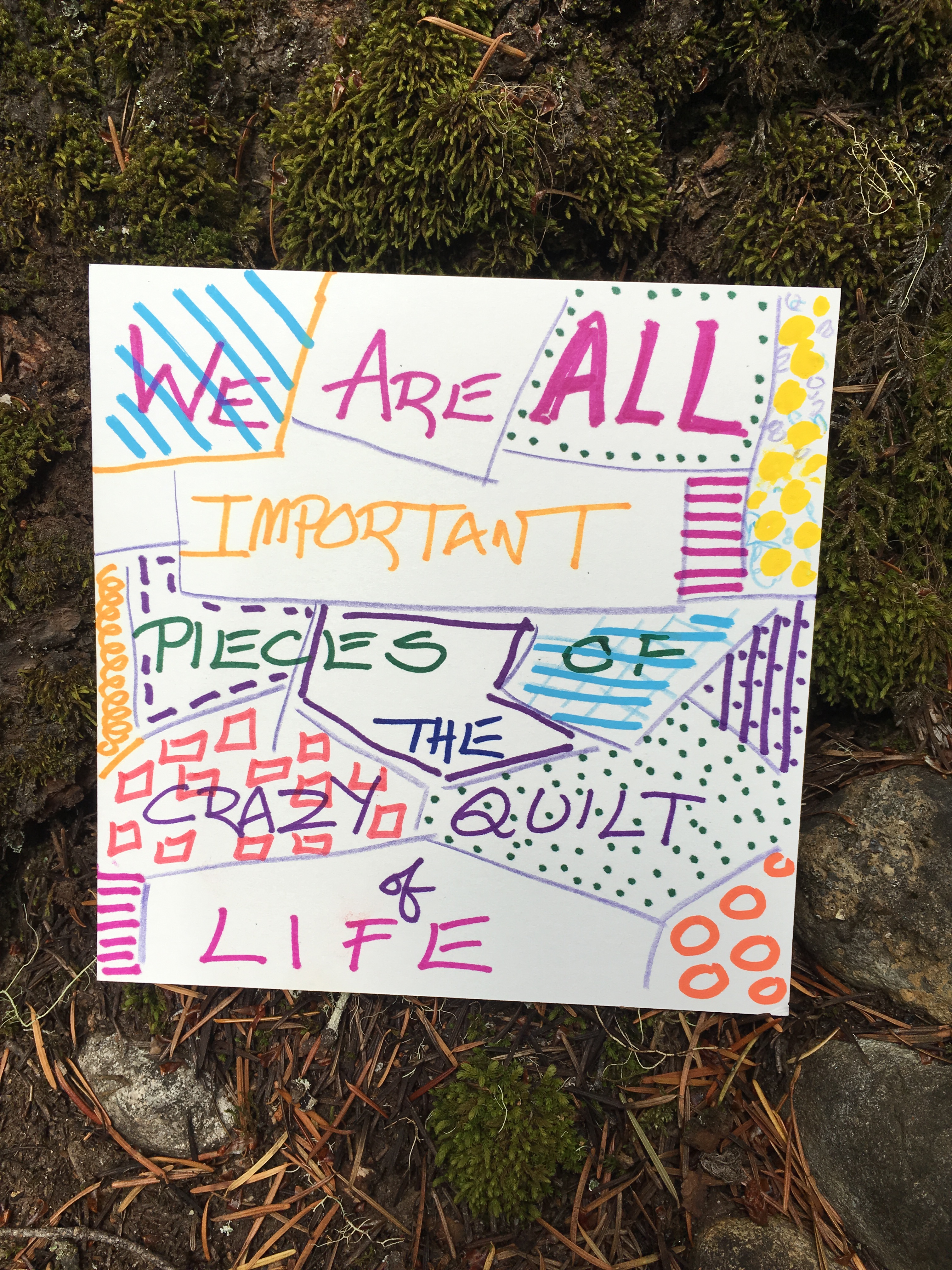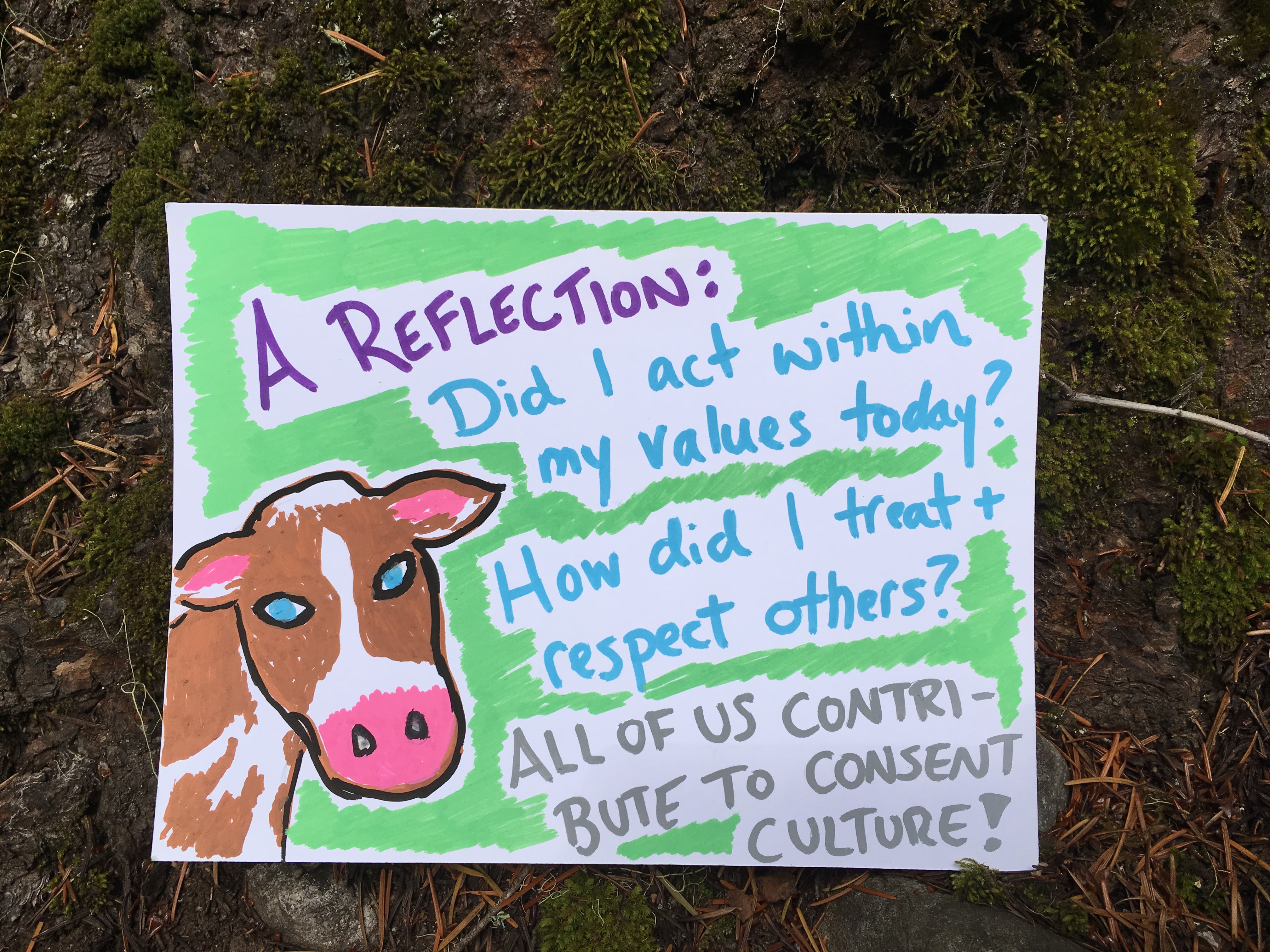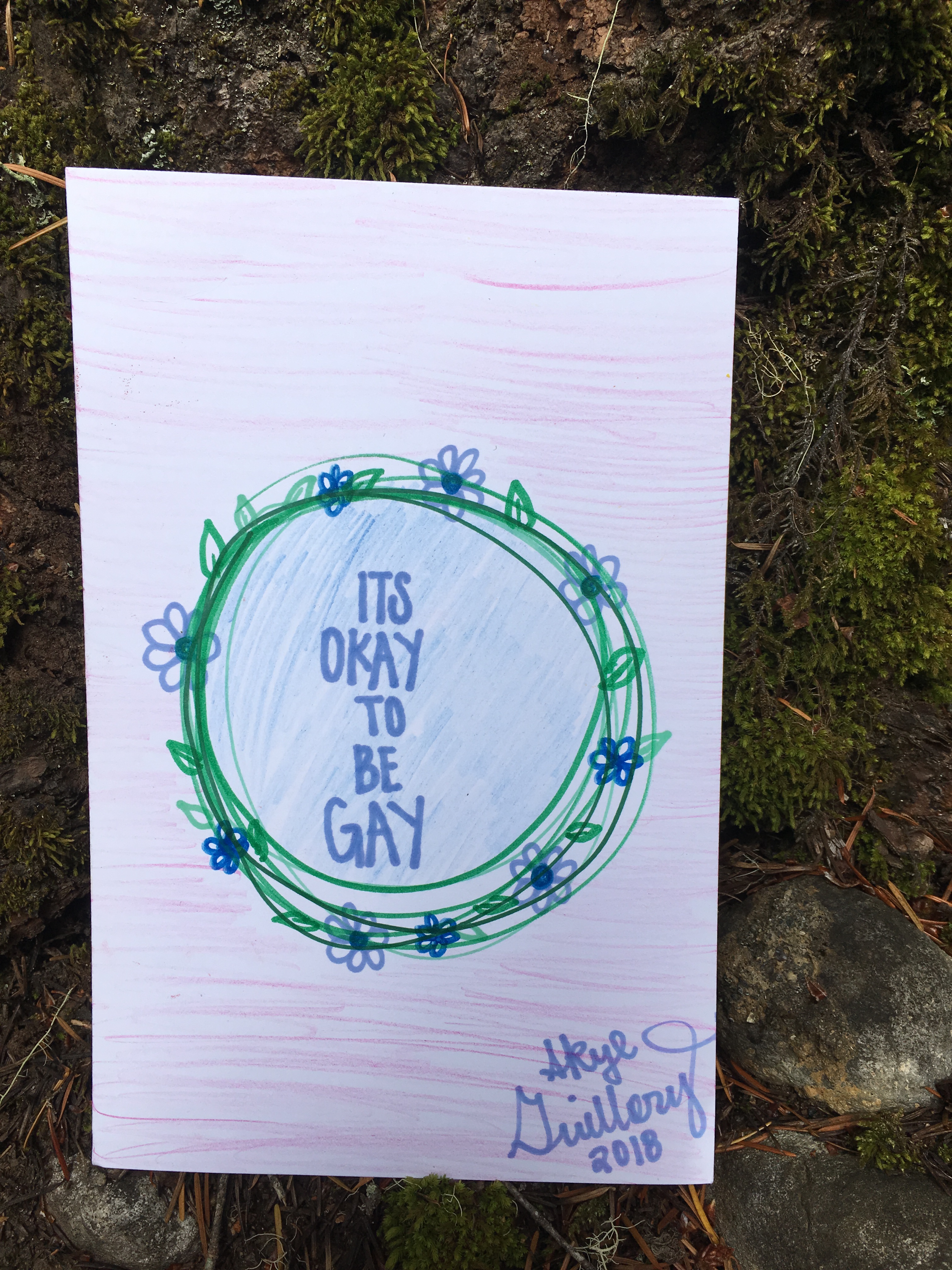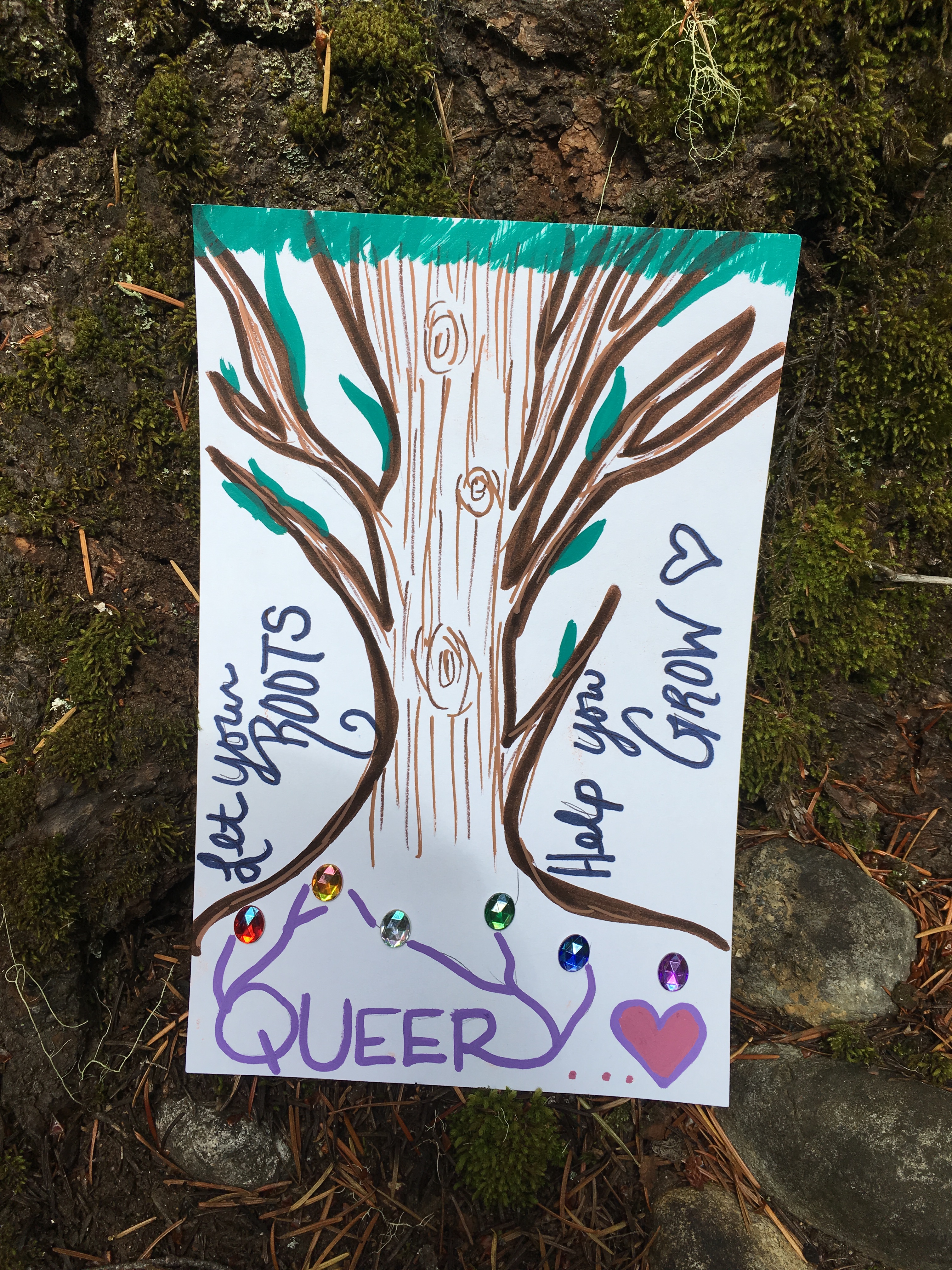 Affirmation Postcard Project: Folks continued to contribute postcards to “Chicken” through art shows and workshops throughout 2019, expanding Collin’s original series into so many more beautiful sentiments and works of art. In total, over 150 postcards were contributed to this project in about a year’s time. Collin brought them to their final stop in August 2019, decorating the walls of Camp Ten Trees’ dining hall, a queer youth summer camp in WA State, with affirming messages. The photos above show these postcards just before they were shown for the last time, many finding new homes with campers before they left.