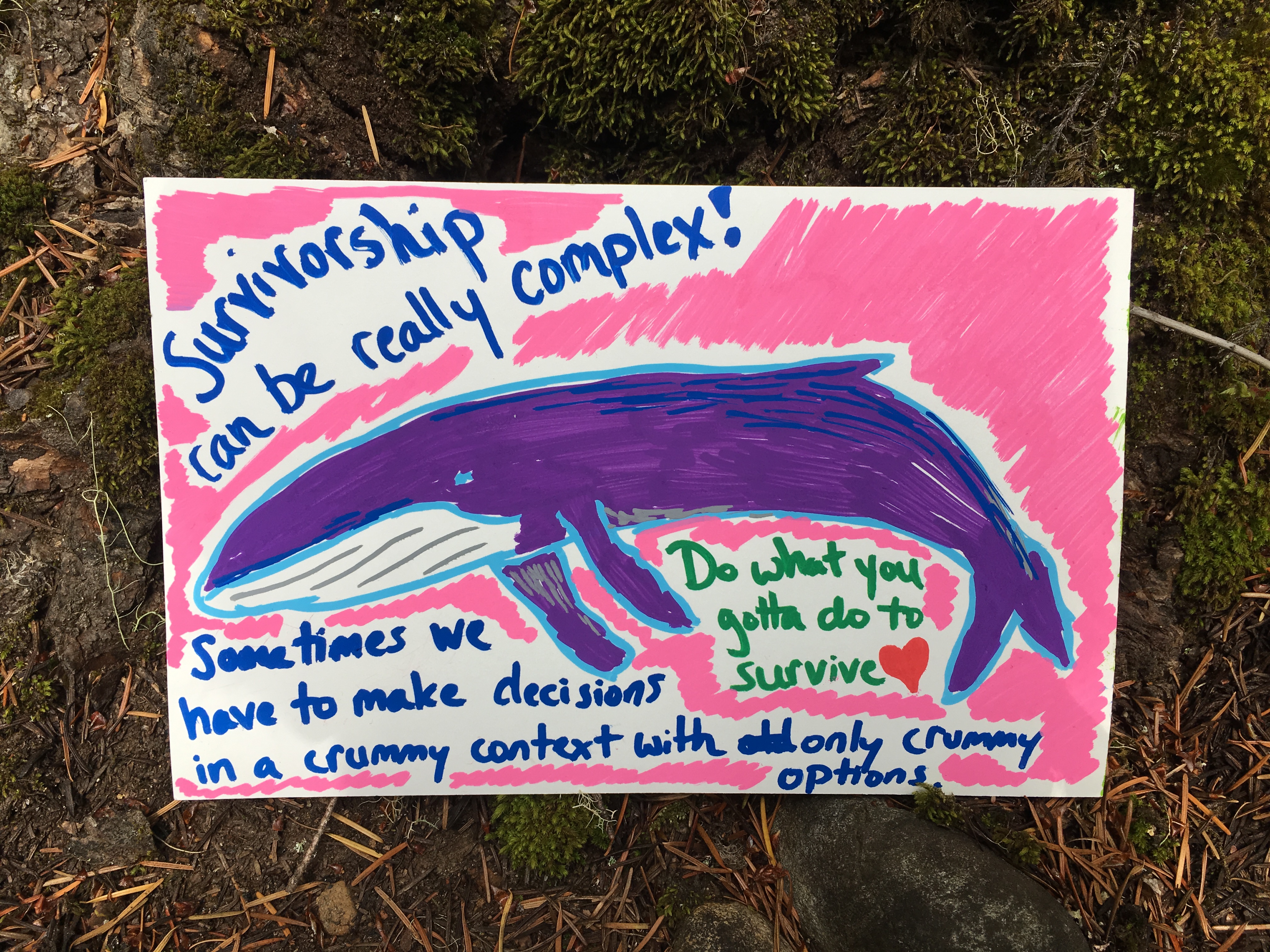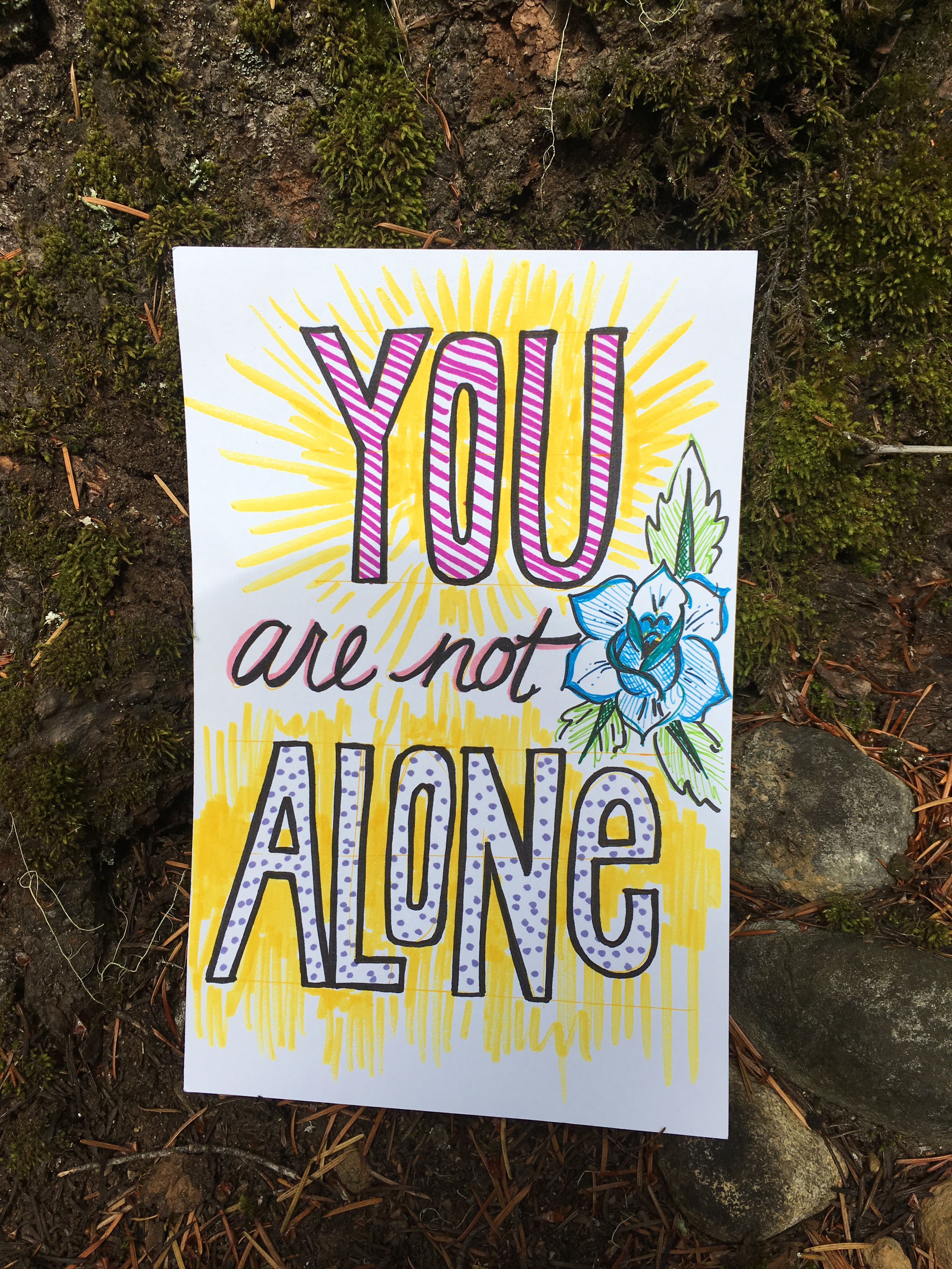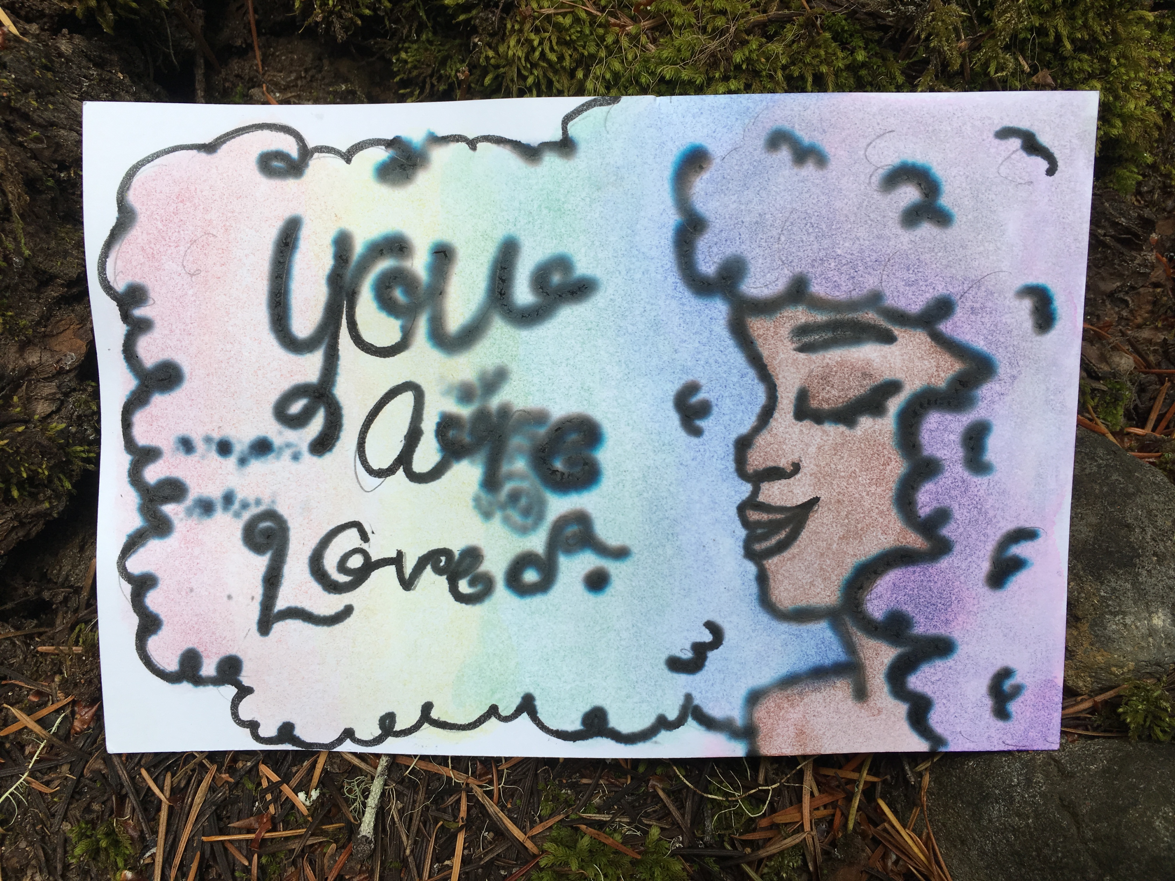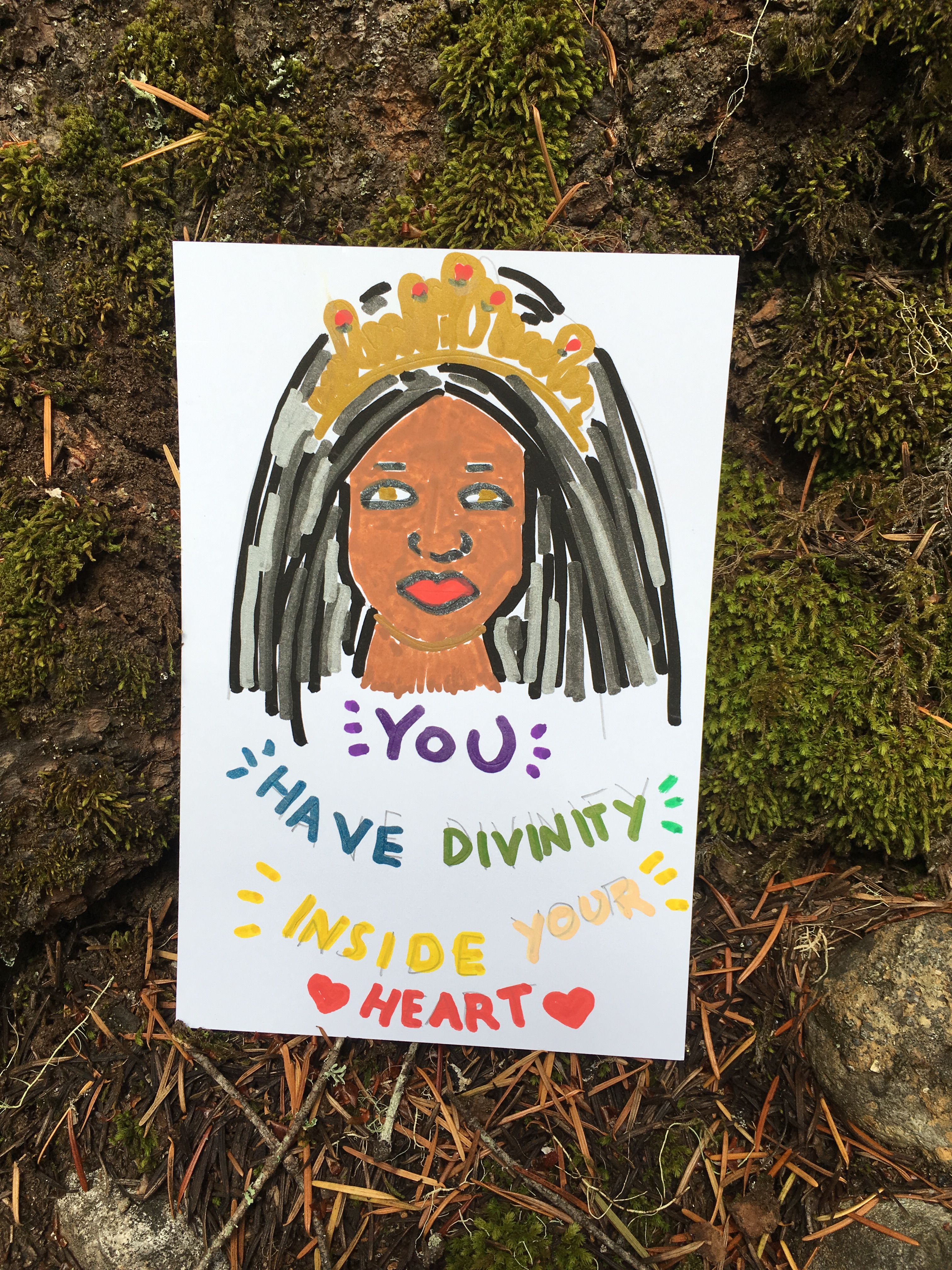 Affirmation Postcard Project: Folks continued to contribute postcards to “Chicken” through art shows and workshops throughout 2019, expanding Collin’s original series into so many more beautiful sentiments and works of art. In total, over 150 postcards were contributed to this project in about a year’s time. Collin brought them to their final stop in August 2019, decorating the walls of Camp Ten Trees’ dining hall, a queer youth summer camp in WA State, with affirming messages. The photos above show these postcards just before they were shown for the last time, many finding new homes with campers before they left.