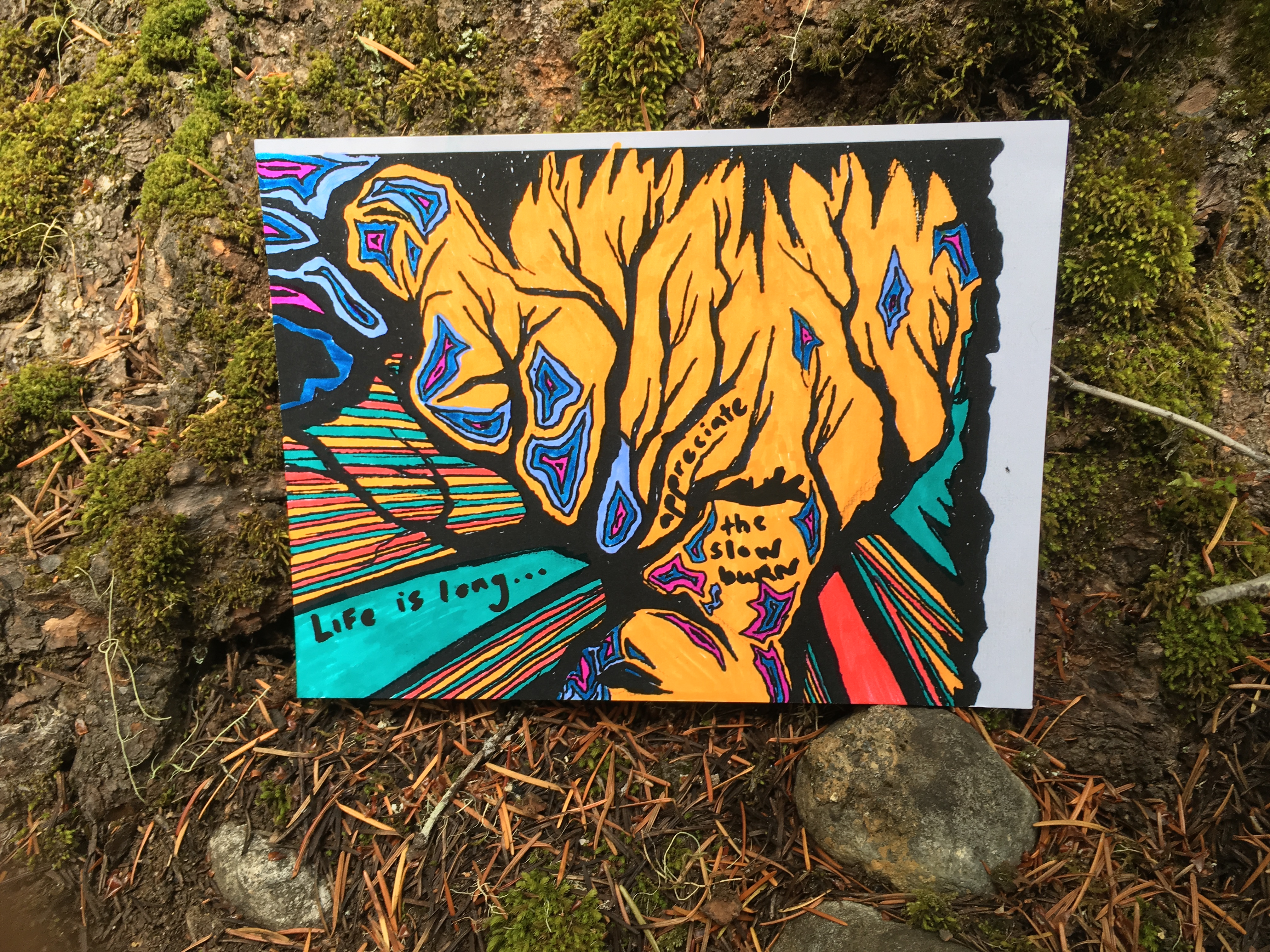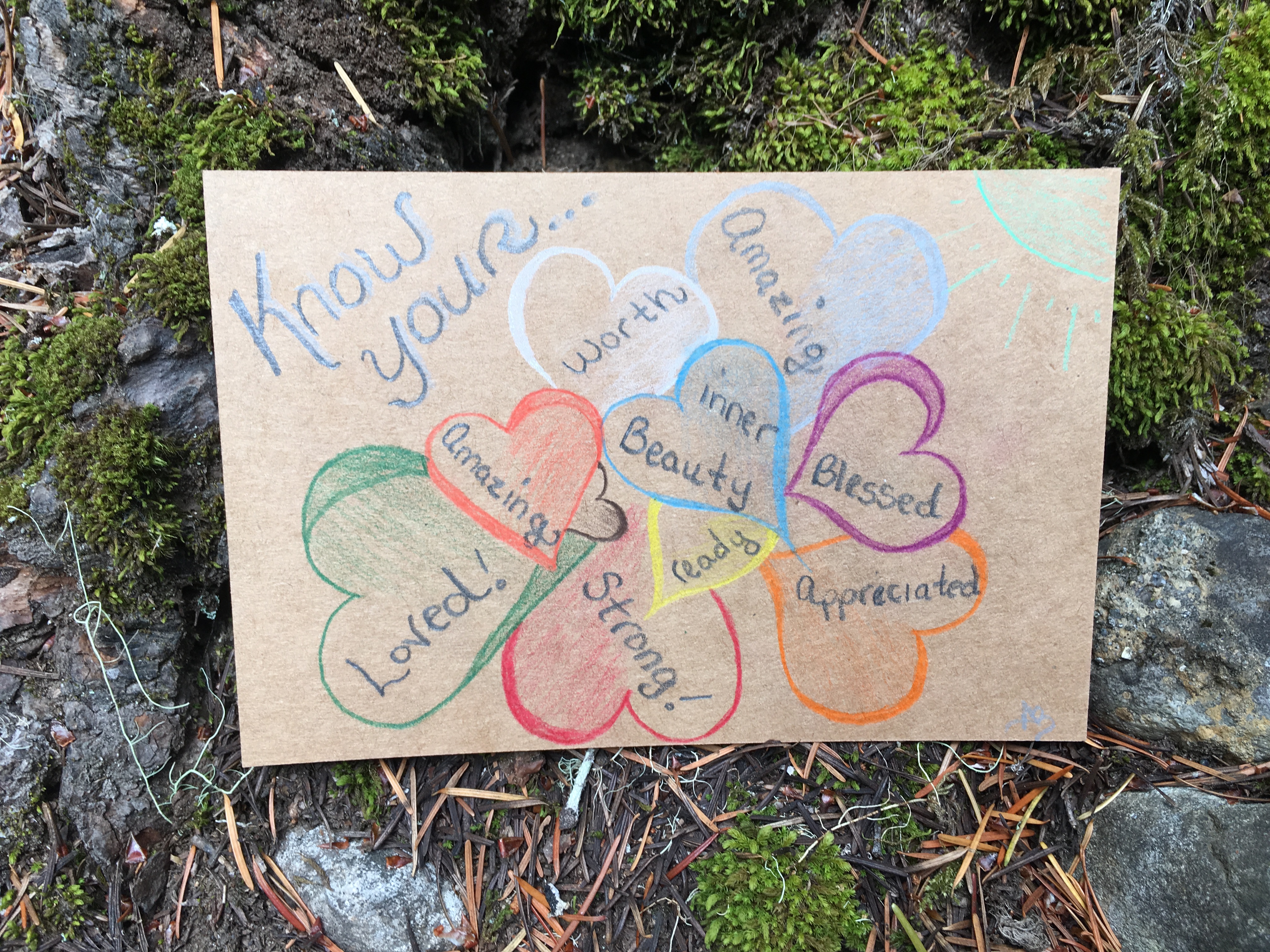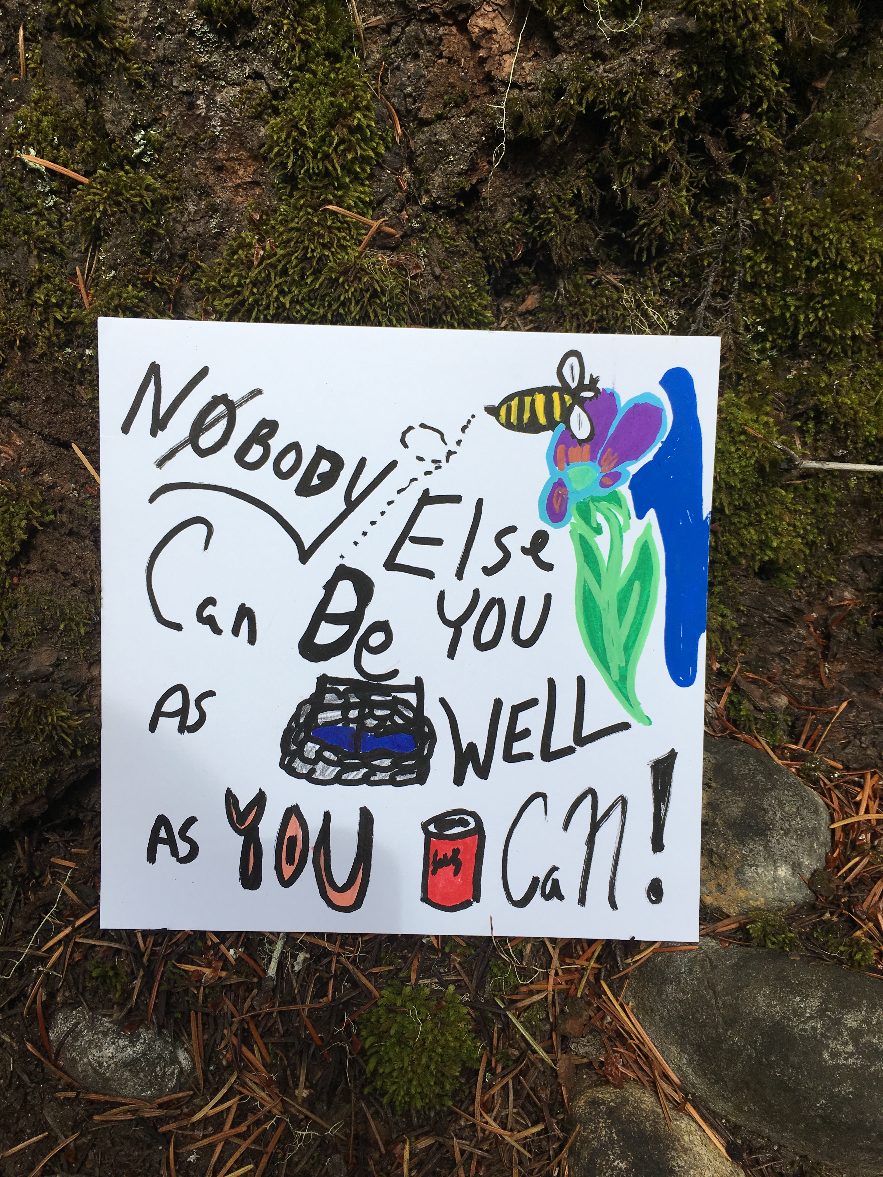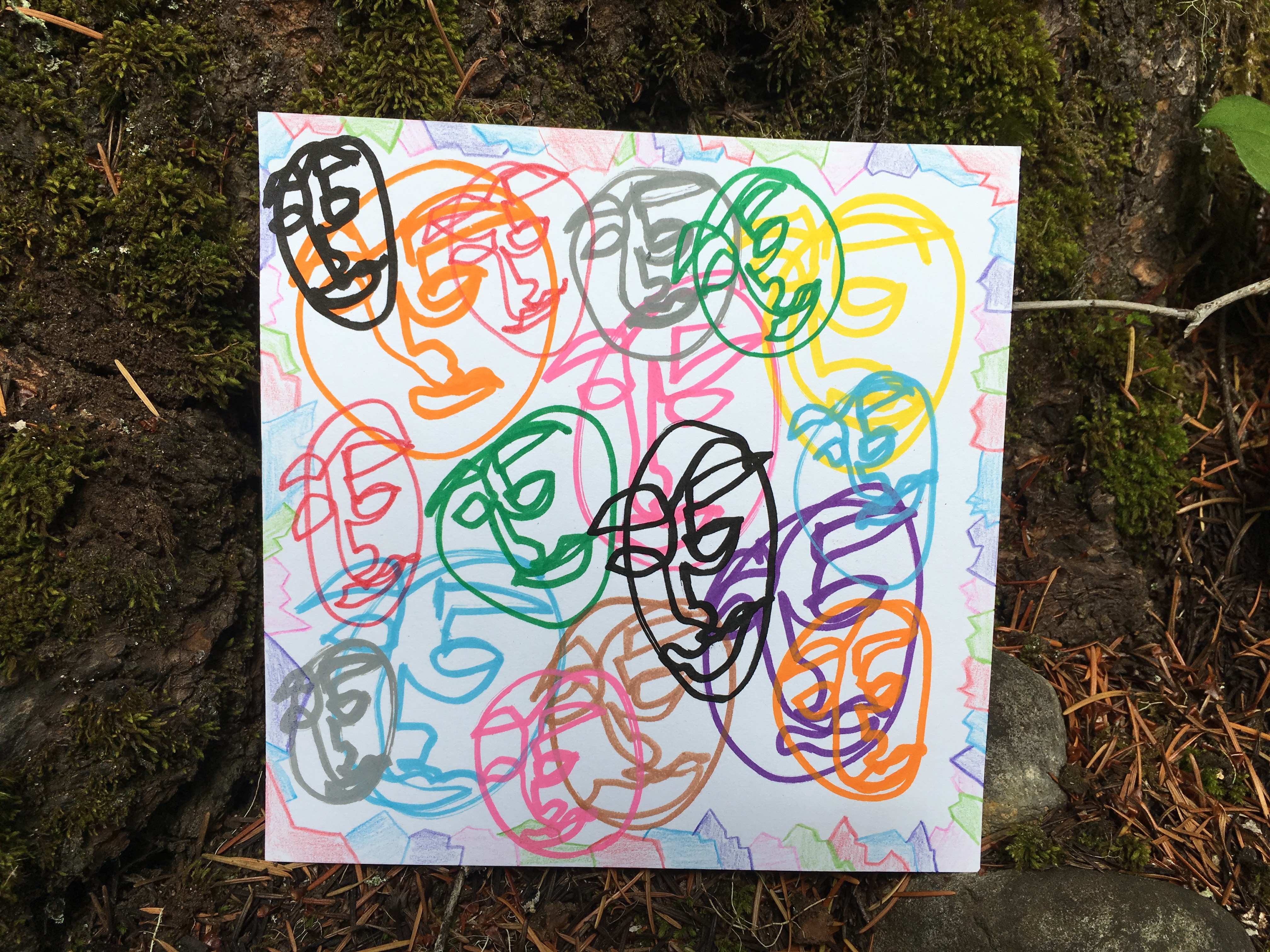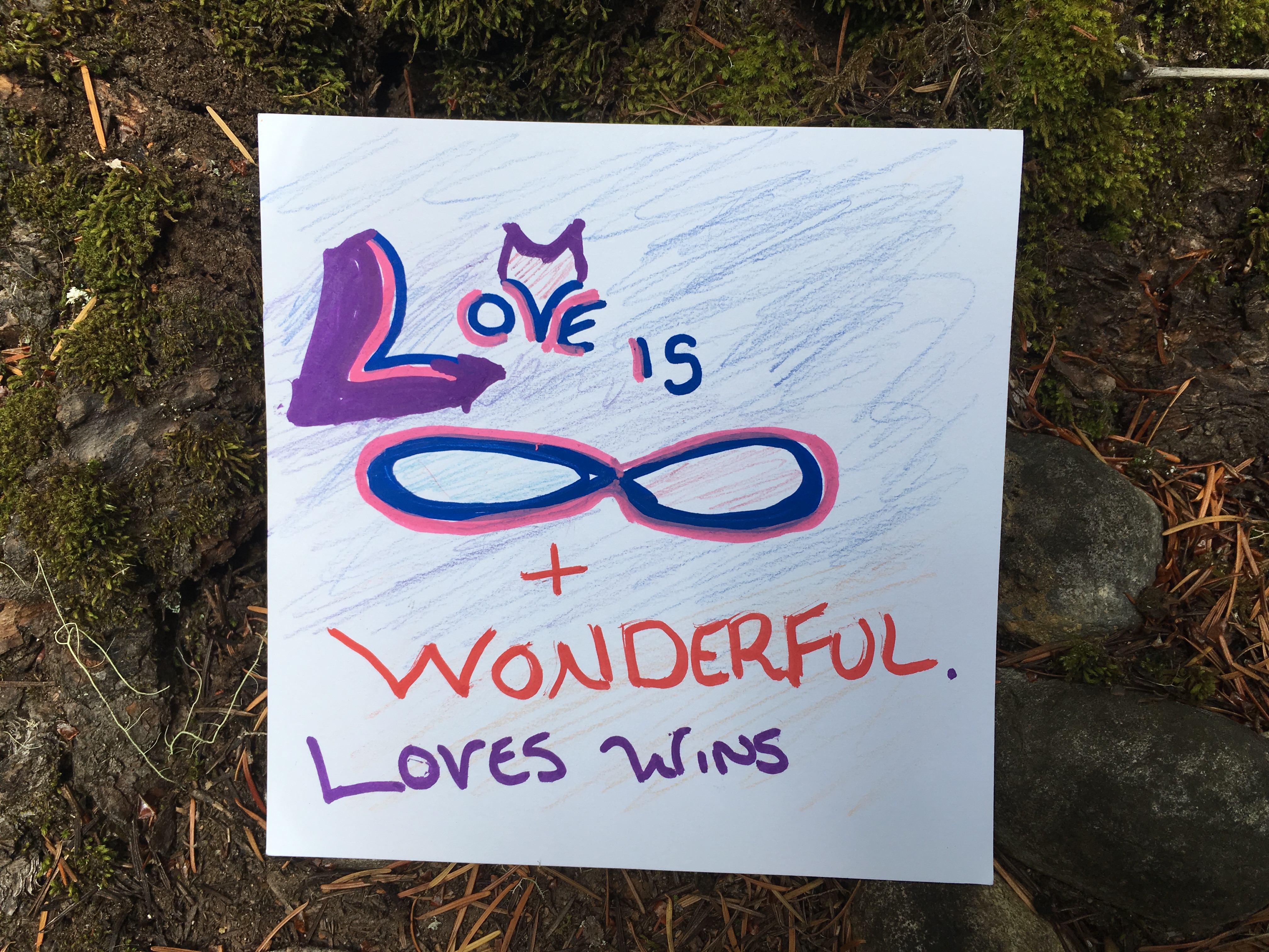 Affirmation Postcard Project: Folks continued to contribute postcards to “Chicken” through art shows and workshops throughout 2019, expanding Collin’s original series into so many more beautiful sentiments and works of art. In total, over 150 postcards were contributed to this project in about a year’s time. Collin brought them to their final stop in August 2019, decorating the walls of Camp Ten Trees’ dining hall, a queer youth summer camp in WA State, with affirming messages. The photos above show these postcards just before they were shown for the last time, many finding new homes with campers before they left.