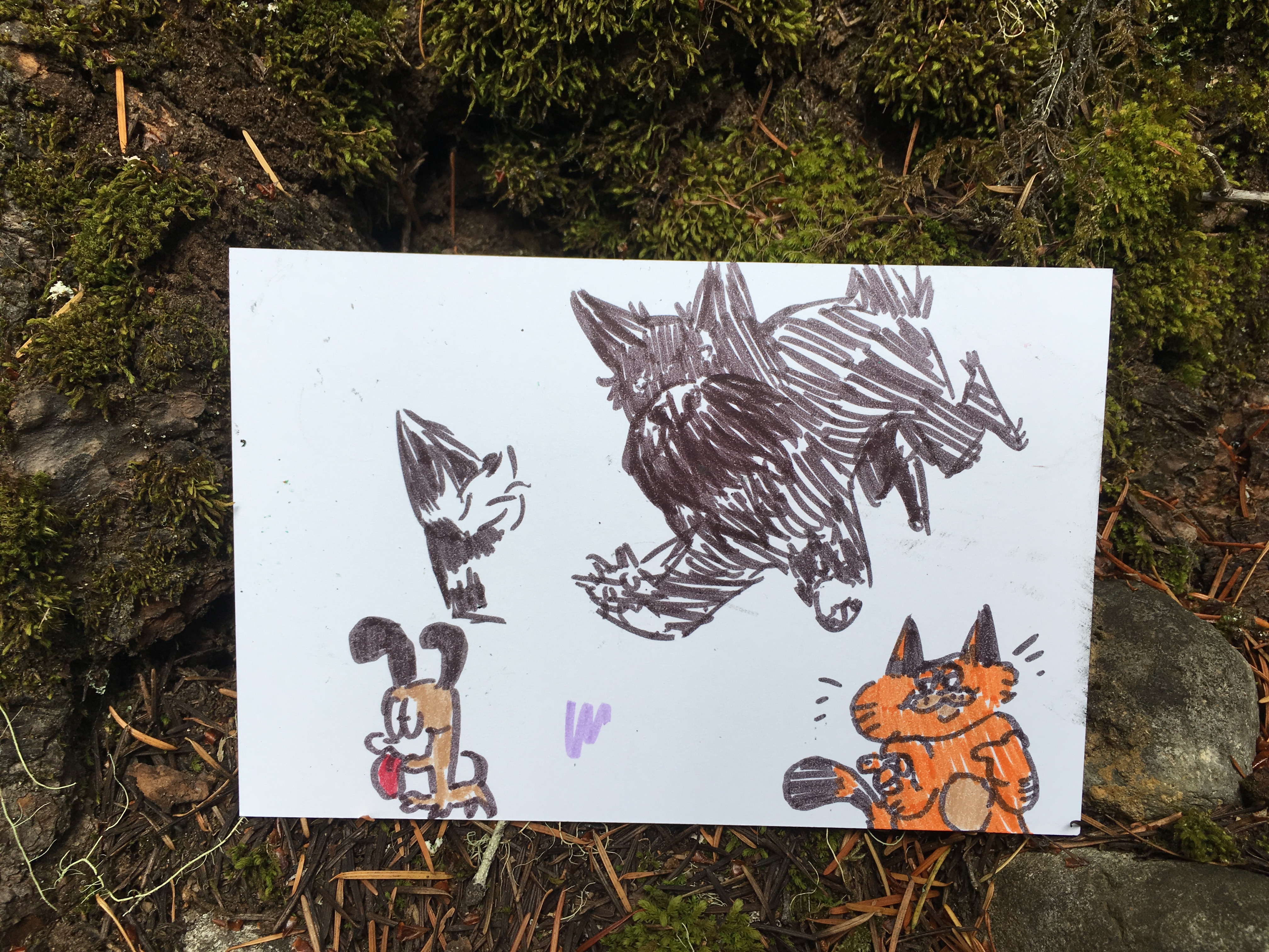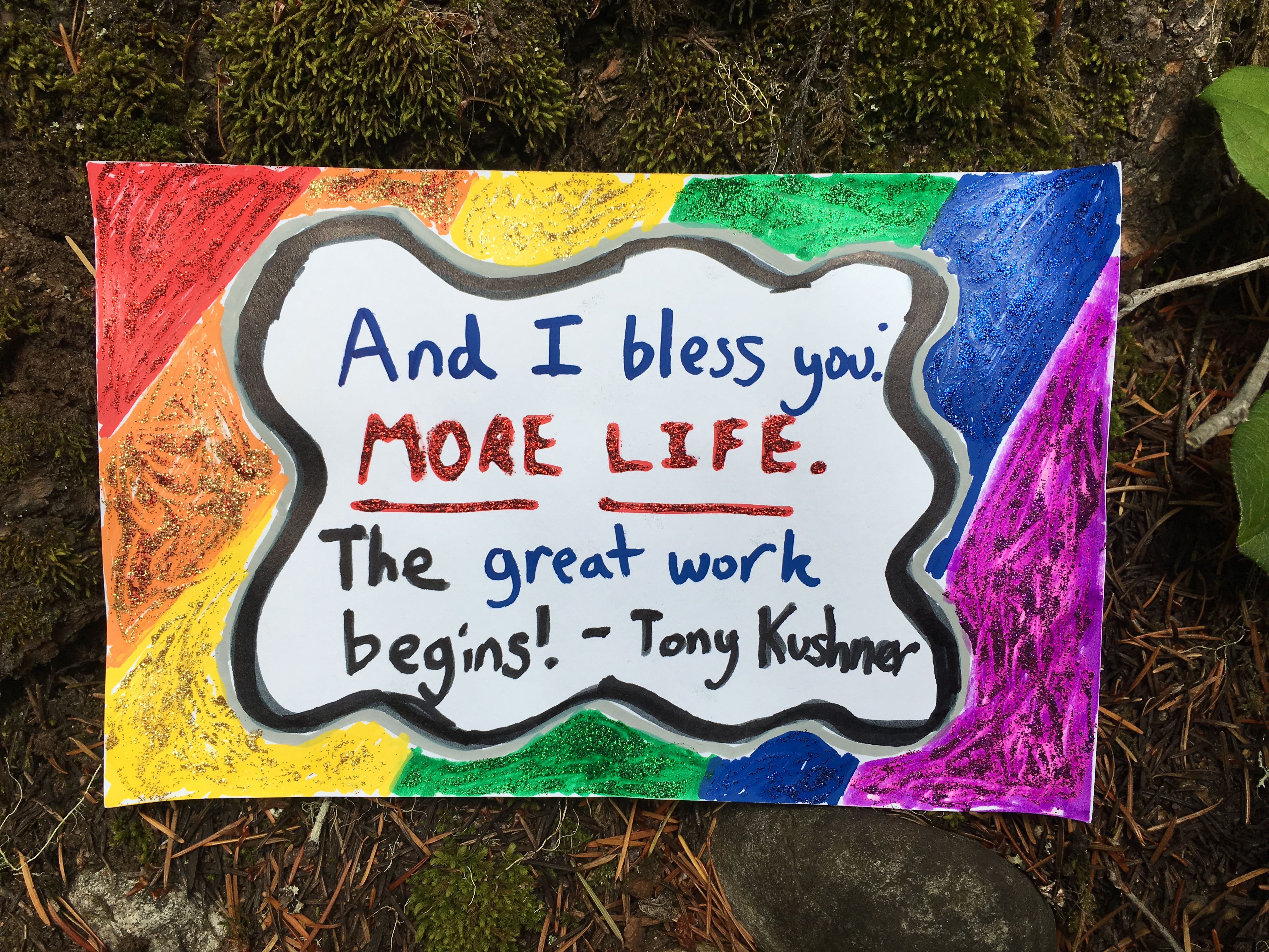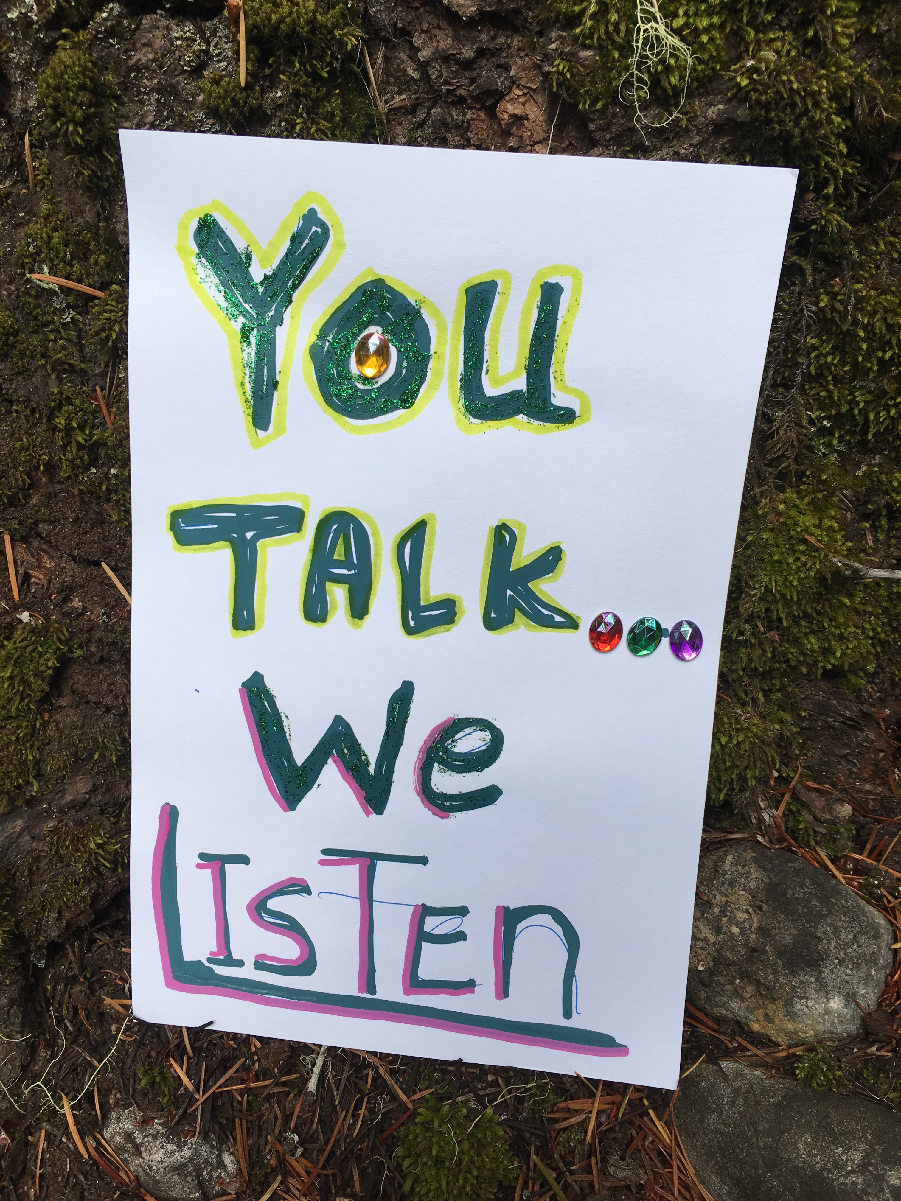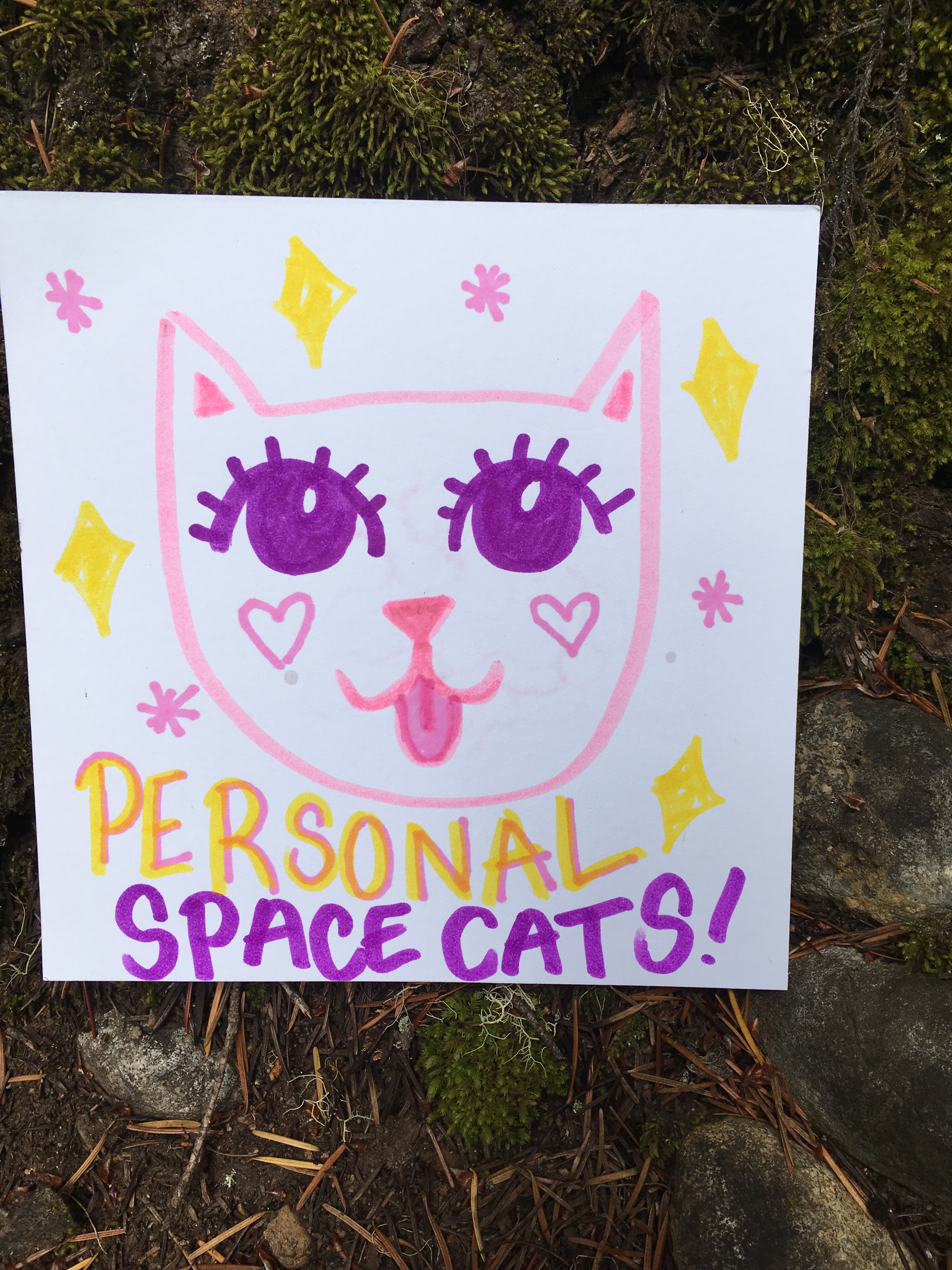 Affirmation Postcard Project: Folks continued to contribute postcards to “Chicken” through art shows and workshops throughout 2019, expanding Collin’s original series into so many more beautiful sentiments and works of art. In total, over 150 postcards were contributed to this project in about a year’s time. Collin brought them to their final stop in August 2019, decorating the walls of Camp Ten Trees’ dining hall, a queer youth summer camp in WA State, with affirming messages. The photos above show these postcards just before they were shown for the last time, many finding new homes with campers before they left.