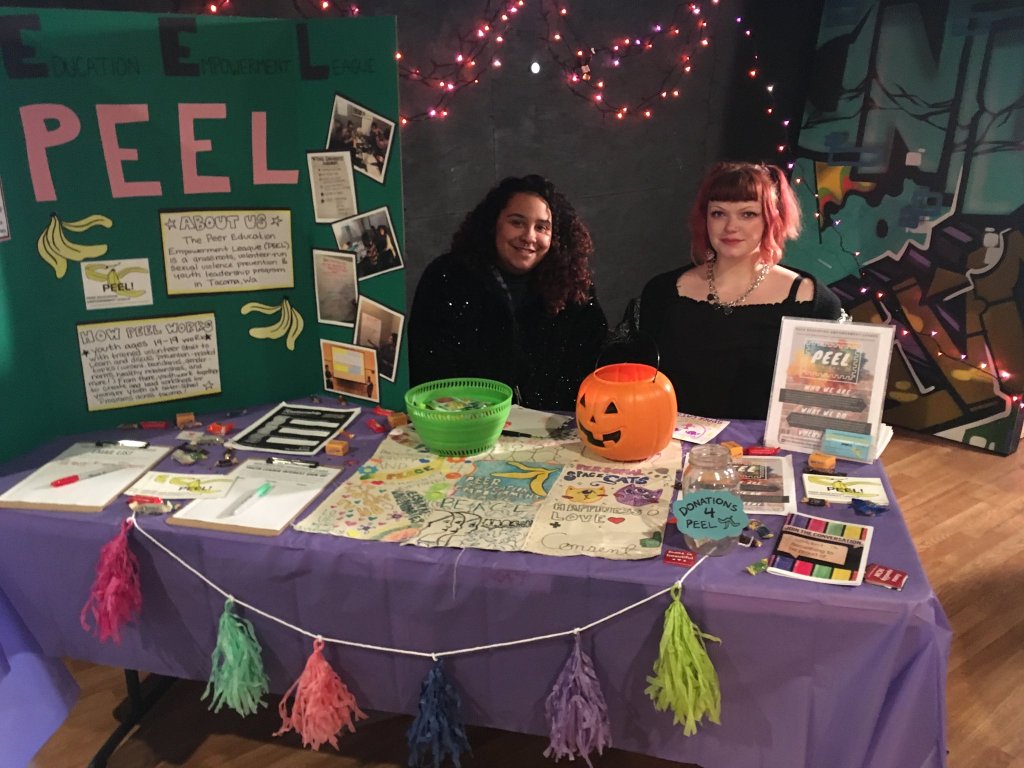 Educational Arts Programming: Collin worked with youth leaders from the Peer Education Empowerment League (PEEL) to facilitate workshops across WA state, meeting with local Gender Spectrum Alliance middle school groups, elementary school programs, LGBTQIA+ youth organizations, families and adults who work with youth. Through these, community members connected and learned about prevention education, youth advocacy, and self-expression through art. Collin’s “Stop Chicken Me Out!” art show in October 2018 featured their complete poster series and the works of youth artists who participated in their workshops the year prior.
